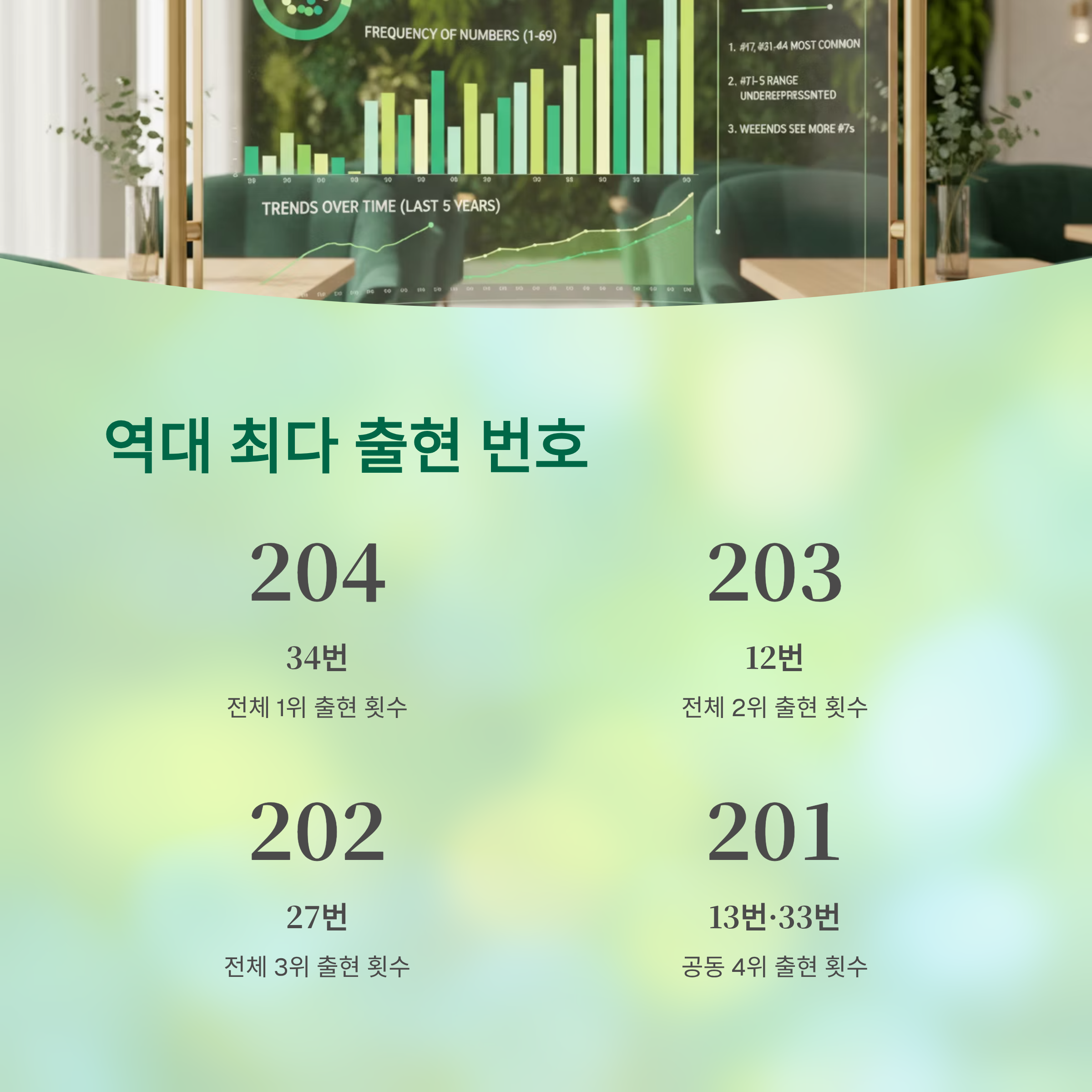 역대 로또 당첨번호 중 가장 많이 출현한 숫자들을 살펴보면 흥미로운 패턴이 보입니다.