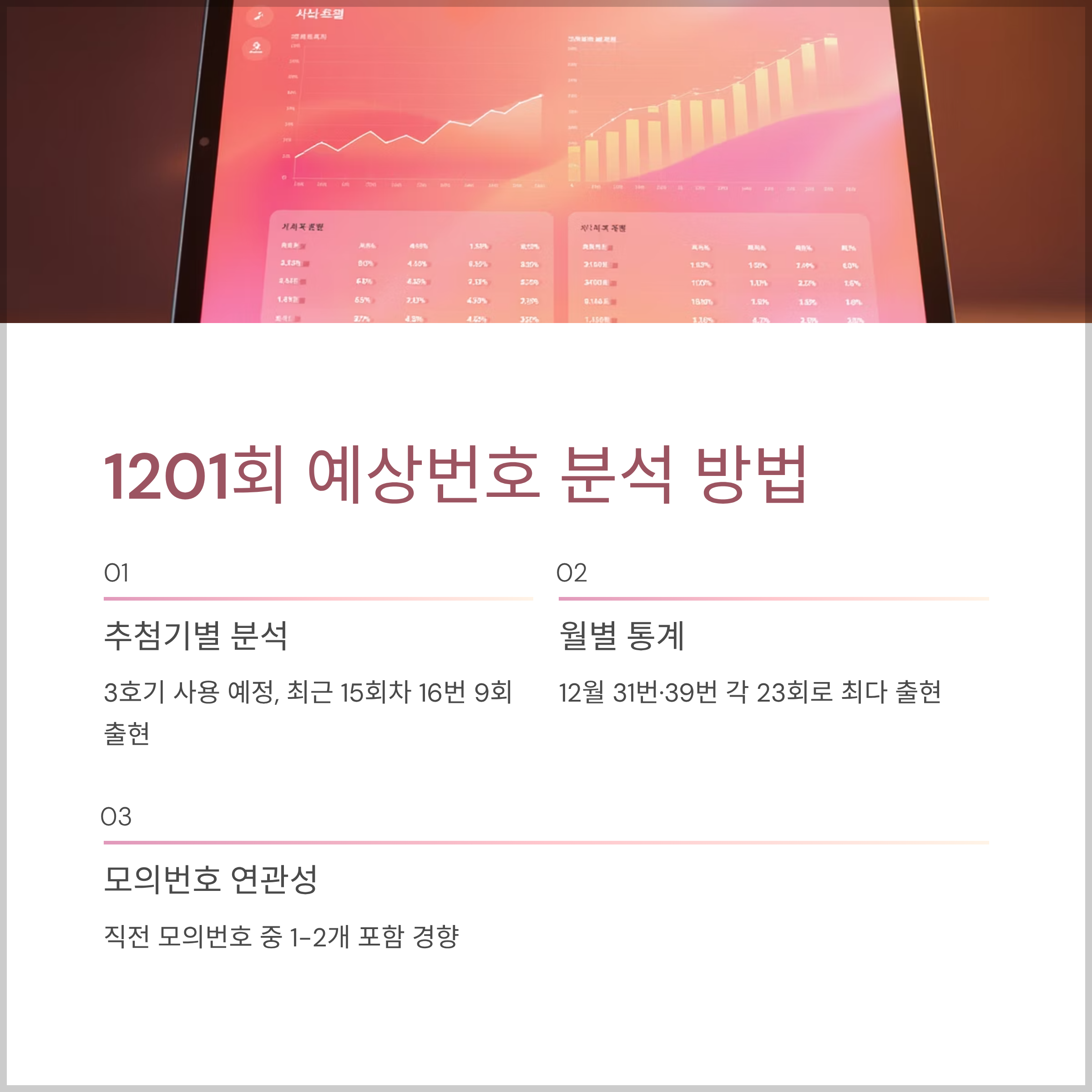 1201회 추첨은 2025년 12월 6일 토요일에 진행될 예정이에요. 이번 글에서 제시한 분석 방법들을 참고하시되, 로또분석 당첨번호 앱을 활용하여 자신만의 맞춤형 번호를 생성해보시는 것을 추천드립니다.