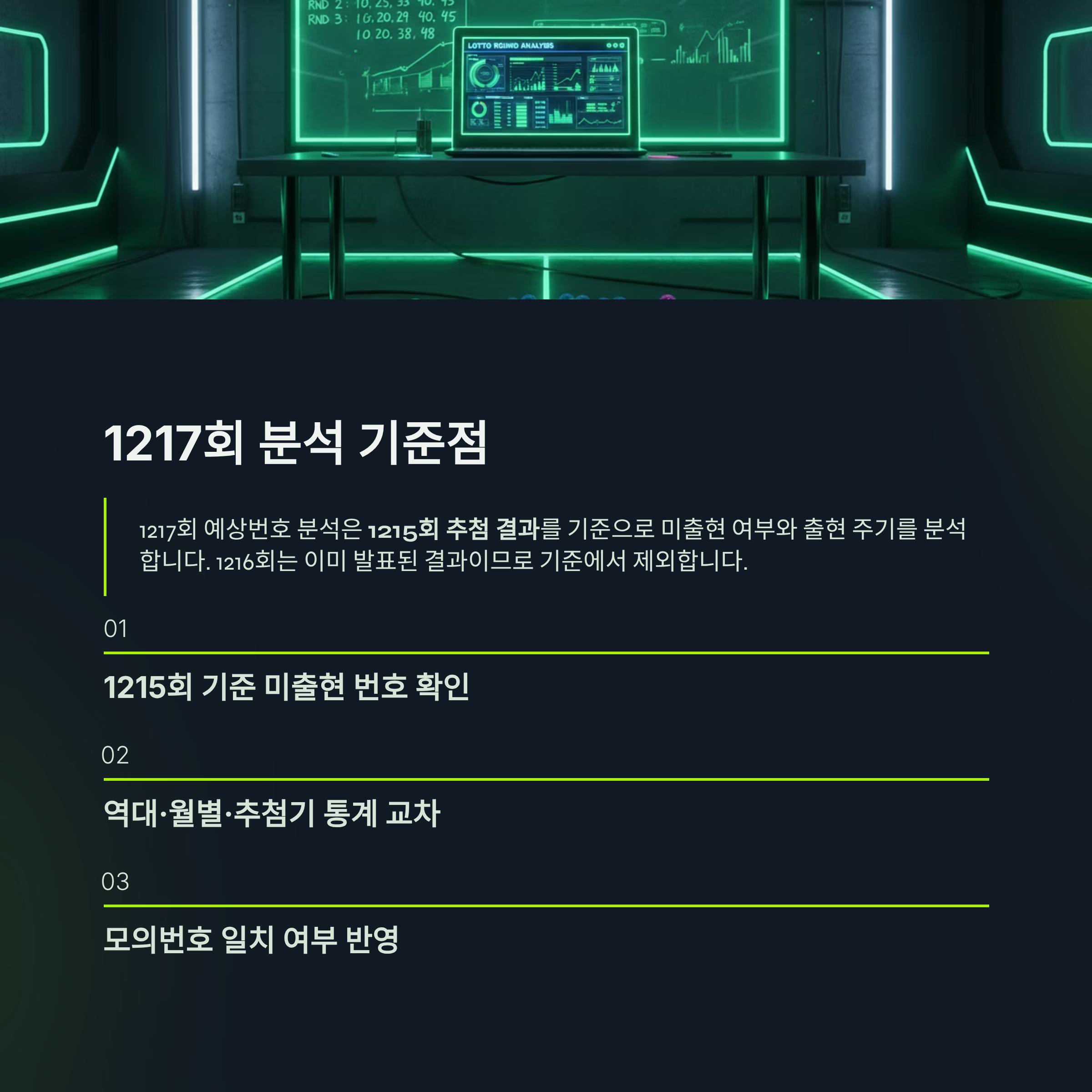 1217회 예상번호를 분석할 때는 1215회 추첨 결과를 기준으로 삼아야 한다는 점 꼭 기억해주세요.